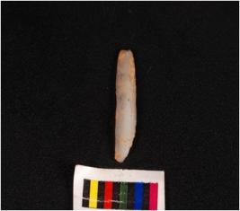 | Description / विवरण | A pen knife blade with a prominent mid ridge on dorsal side, use wear marks on right dorsal side and diffused bulb on ventral side. |