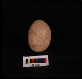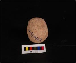 | Description / विवरण | Terracotta sling ball, round in shape and surface treated with wash in red colour. |