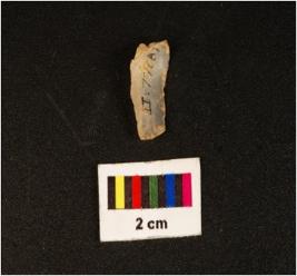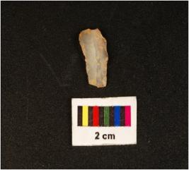 | Description / विवरण | Fragment of microlithic blade with double ridge on dorsal. Use wear marks on cutting edges and trapezoid in section. |