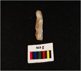 | Description / विवरण | Parallel sided microlith blade with use wear marks on cutting edges and prominent ridge on dorsal side, prominent bulb on proximal end, it has triangular section. |