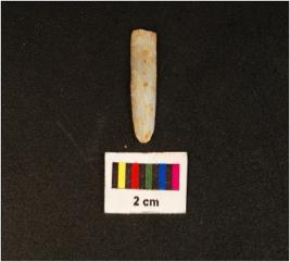 | Description / विवरण | Parallel sided microlithic blade with use wear marks on cutting edges and double ridge on dorsal. Trapezoid in section and diffused bulb on proximal end. |