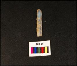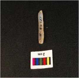 | Description / विवरण | Parallel side microlithic blade with double ridge on dorsal side, trapezoidal in section, broken from distal end, use wear mark along the cutting edges, covered with dust. |