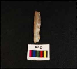 | Description / विवरण | Parallel sided microlith blade with use wear marks on cutting edges, it has diffused bulb on ventral side, prominent ridge on dorsal side and triangular section. |