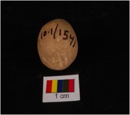 | Description / विवरण | Terracotta sling ball, round in shape, rough surface, slightly notching marks are visible, buff in colour and small in size. |