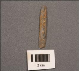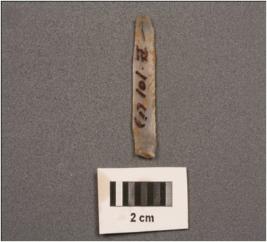 | Description / विवरण | A parallel sided blade with two ridges on dorsal side, use-wear marks on cutting edges, diffused bulb on ventral side, trapezoidal section. |