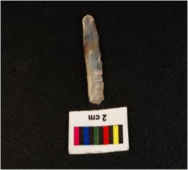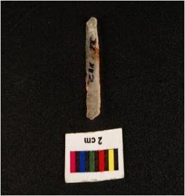 | Description / विवरण | Parallel sided microlith blade with use wear marks on cutting edges and prominent mid ridge on dorsal. Prominent bulb on proximal end and triangular section. |