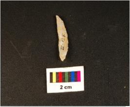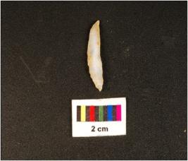 | Description / विवरण | Pen knife shaped chalcedony blade, mid-ridge on dorsal, flat ventral, distal ends. Use wear edges. |