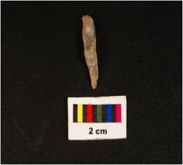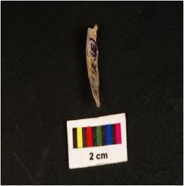 | Description / विवरण | Microlithic blade with use wear marks on cutting edges and prominent mid ridge on dorsal. Triangular in section and broken distal end. |