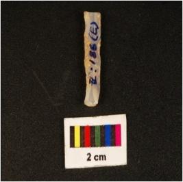 | Description / विवरण | Parallel sided microlithic blade with use wear marks on cutting edges and improminent double ridge on dorsal. Diffused bulb on proximal end and trapezoid in section. |