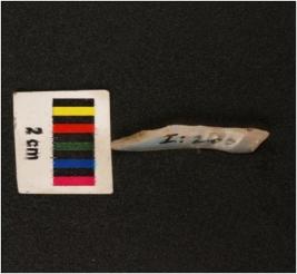 | Description / विवरण | A parallal sided chalcedony blade, mid ridge on dorsal side and diffused bulb on ventral side along with proximal and. Used wear marks on edges. |
