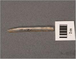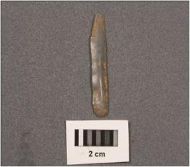 | Description / विवरण | Parallal stone blade with a mid ridge on dorsal side and diffused bulb on ventral and use wear marks on cutting edges. |