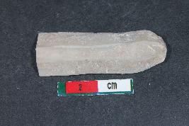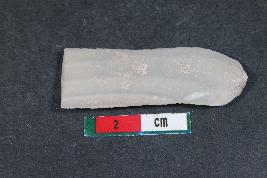 | Description / विवरण | Fragment of a Blade with two dorsal ridges having smooth surface. It also has bulb of percussion on the ventral side. |