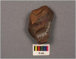 | Description / विवरण | A end scraper on end struck flake and use-wear mark on cutting edges and flake scars on dorsal side. |