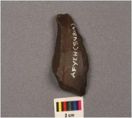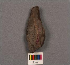| Description / विवरण | A end scraper on end struck flake with irregular retouching on distal end and cortex on dorsal side. |