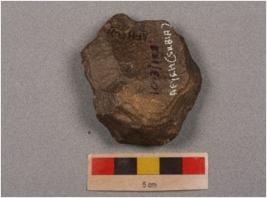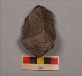 | Description / विवरण | A side scraper on end struck flake with irregular retouching on cutting edges. |