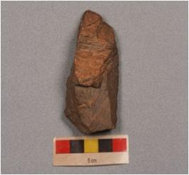 | Description / विवरण | A side scraper on end struck flake, smooth ventral, flake scars on dorsal use wear marks on cutting edges and cortex on dorsal. |