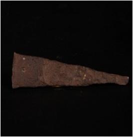 | Description / विवरण | A piece of copper chisel, one end is pointed and another end is flat, surface is corroded. |