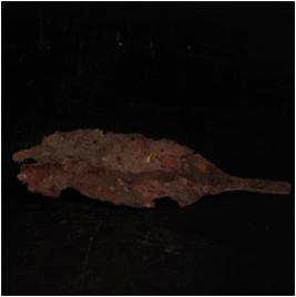 | Description / विवरण | Fragment of spear head, surface is flat and edges are broken, surface is corroded. |