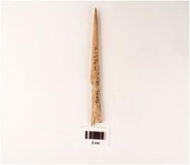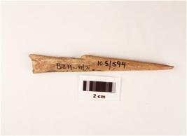 | Description / विवरण | A sharp bone point, proximal and distal ends intact, polished, rough on scnce parts of surface. |