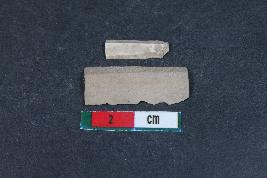 | Description / विवरण | Fragments of blades with two dorsal ridges having smooth surface. Shorter fragment has length equivalent to 1.4 cm. |