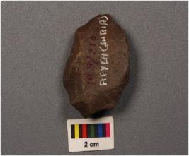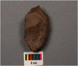 | Description / विवरण | A side scraper on side struck flake with irregular retouches on sides. |
