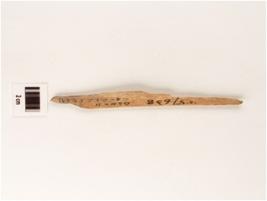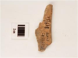 | Description / विवरण | Fragment of modified bone object, dusty surface, brownish colour, uneven shape. |