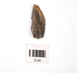 | Description / विवरण | A convex sided scraper made of chert, prepared platform, diffused bulb at distal end, regular retouching. |