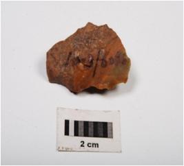 | Description / विवरण | A chert core with three flake scars and partly intact cortex. |