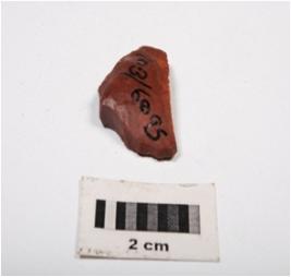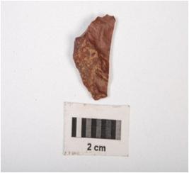 | Description / विवरण | A chert end scraper made on chert flake with use-wear marks along the cutting and prominent bulb. |