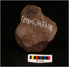 | Description / विवरण | A side scraper, struck flake, flake scars on dorsal side, irregular retouch on edges of dorsal cutting edges and bulb on preximal end. |