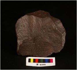 | Description / विवरण | A side scraper on side struck flake, flake scars on dorsal side, regular retouch on right ventral cutting edges and bulb on proximal end. |
