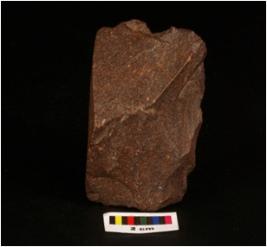 | Description / विवरण | A end scraper made on a side struck flake, regular retouch on dorsal side with denticulated cutting edges, bulb on proximal end and flake scars on dorsal side. |