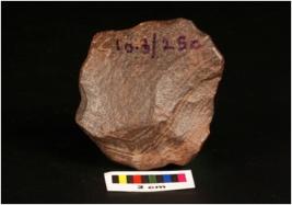 | Description / विवरण | A end scraper made on end struck flake, minor flake scras on dorsal side, retouch on distal end, cutting edges and flake on ventral surface. |