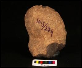| Description / विवरण | A end scraper made on a side struck flake cortex is present, regular rectouch along disital end and bulb on ventral. |