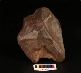 | Description / विवरण | A end-scraper made on end struck flake, sode, bulb on ventral side and one pointed side end. |