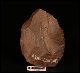 | Description / विवरण | A end-scraper made on side struck flake, plat form is present, bulb on ventral side, regular retouch and flake scars on surface. |