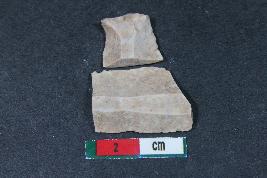 | Description / विवरण | Fragments of a blade having two dorsal ridges and bulb of percussion in one of them. They have smooth surface. |