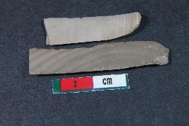 | Description / विवरण | Fragments of blades having one dorsal ridge in larger one and two dorsal ridges in smaller one. They have smooth surface. |