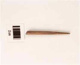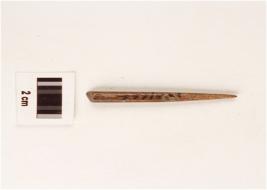 | Description / विवरण | Fragment of bone point, highly polished, brownish in colour, pointed, one end, circular cross section, other end damaged. |