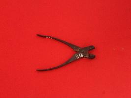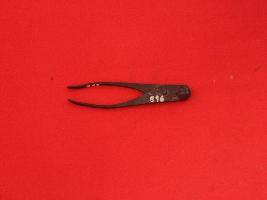 | Description / विवरण | It is a bullet mold made of iron. Two iron arms are arranged cross wise with a nut through them. Ends of the cross arms are shaped like a bawl. When the arms pressed together the bawl shape ends come closer. |