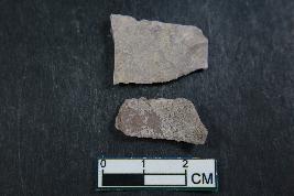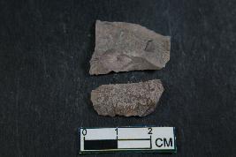 | Description / विवरण | Fragment of blades having two dorsal ridges. It has rough surface. Shorter fragment has length equivalent to 2.2 cm. |