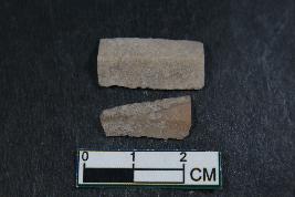 | Description / विवरण | Fragment of blade having one dorsal ridges. It has smooth surface. Shorter fragment has length equivalent to 1.8 cm, along with two dorsal ridge. |