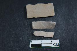 | Description / विवरण | A Fragment of blades having two dorsal ridges. It has smooth surface. Shorter fragment has length equivalent to 1.8 cm. |