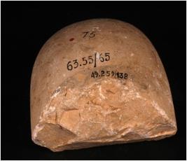 | Description / विवरण | Fragment of stone macehead. Segemented from sections and concave from inside. |