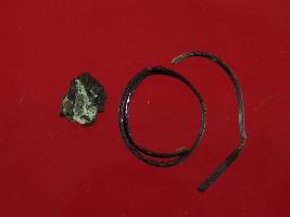 | Description / विवरण | Trench E- 4, Layer 3 This is a copper wire and piece.Wire is in twisted foam. Both are treated. Hard patina deposite on small piece.Colour of object is copper brown. |
