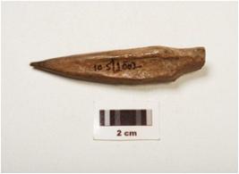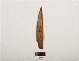 | Description / विवरण | A bone point with polished surface, one end pointed another damaged and a natural groove on the surface. |
