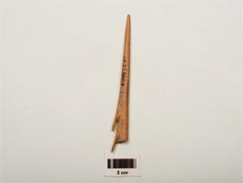 | Description / विवरण | Fragment of bone harpoon with two barb with pointed end one side and another side damaged end. |