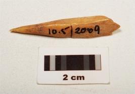 | Description / विवरण | A bone point with working sharp pointed end and another damaged, with polished surface. |