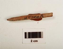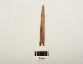 | Description / विवरण | A fragment of bone needle with pointed one end and eye point broken and polished surface. |