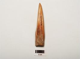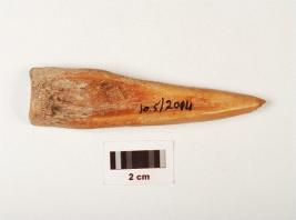 | Description / विवरण | A bone point one end pointed, another end broad, polished surface, with a natural groove. |